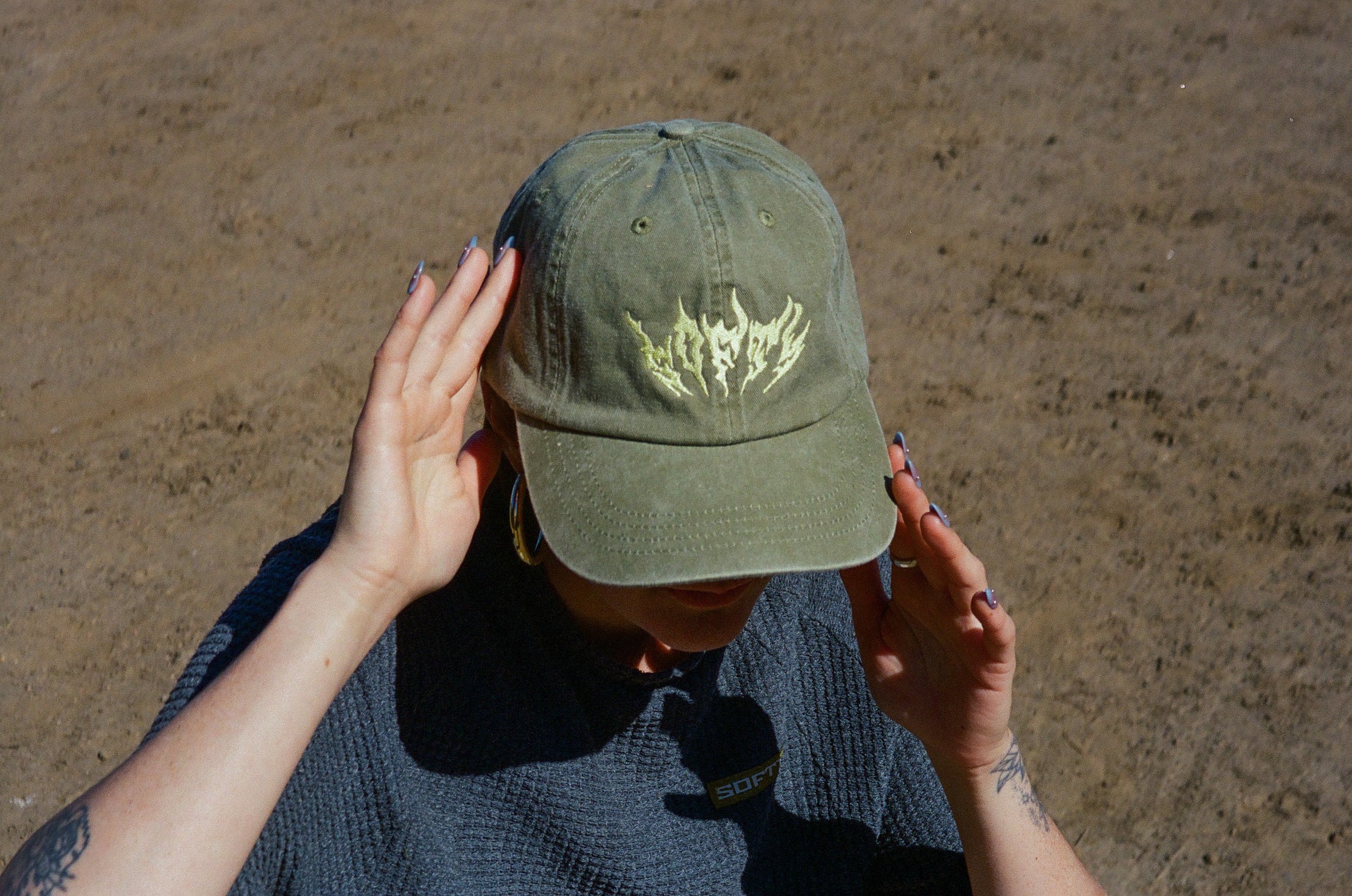 Classic washed dad cap made from brushed cotton. Laid back fit, slightly curved brim and an adjustable brass metal closure.